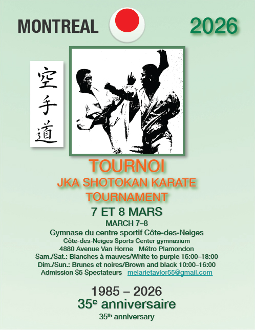 Les clubs de karaté Shidokan International et Concordia JKA vous invite cordialement au 35e tournoi annuel de karaté JKA Montréal.